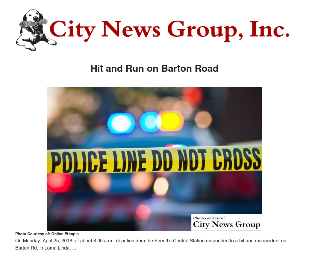 LOMA LINDA >> On Monday, April 25, 2016, at about 8:00 a.m., deputies from the Sheriff’s Central Station responded to the report of an unconscious male laying in the north shoulder of Barton Road east of California Street, in the city of Loma Linda.