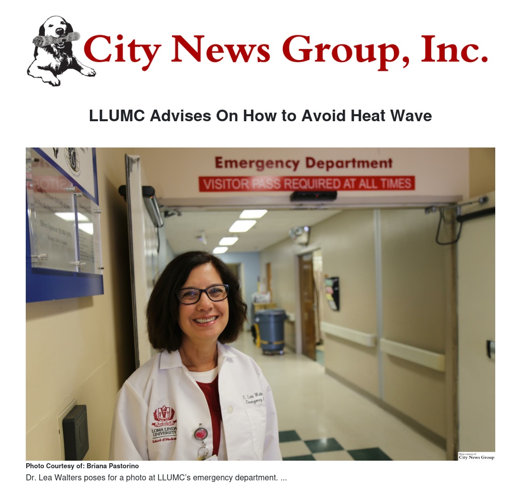 LOMA LINDA >> Loma Linda University Medical Center (LLUMC) is prepped and ready for the possibility of an influx of patients as outdoor temperatures continue to spike. However, emergency department physician and medical director Dr. Lea Walters, is offering advice and tips on surviving the heat wave to avoid a trip to the hospital.