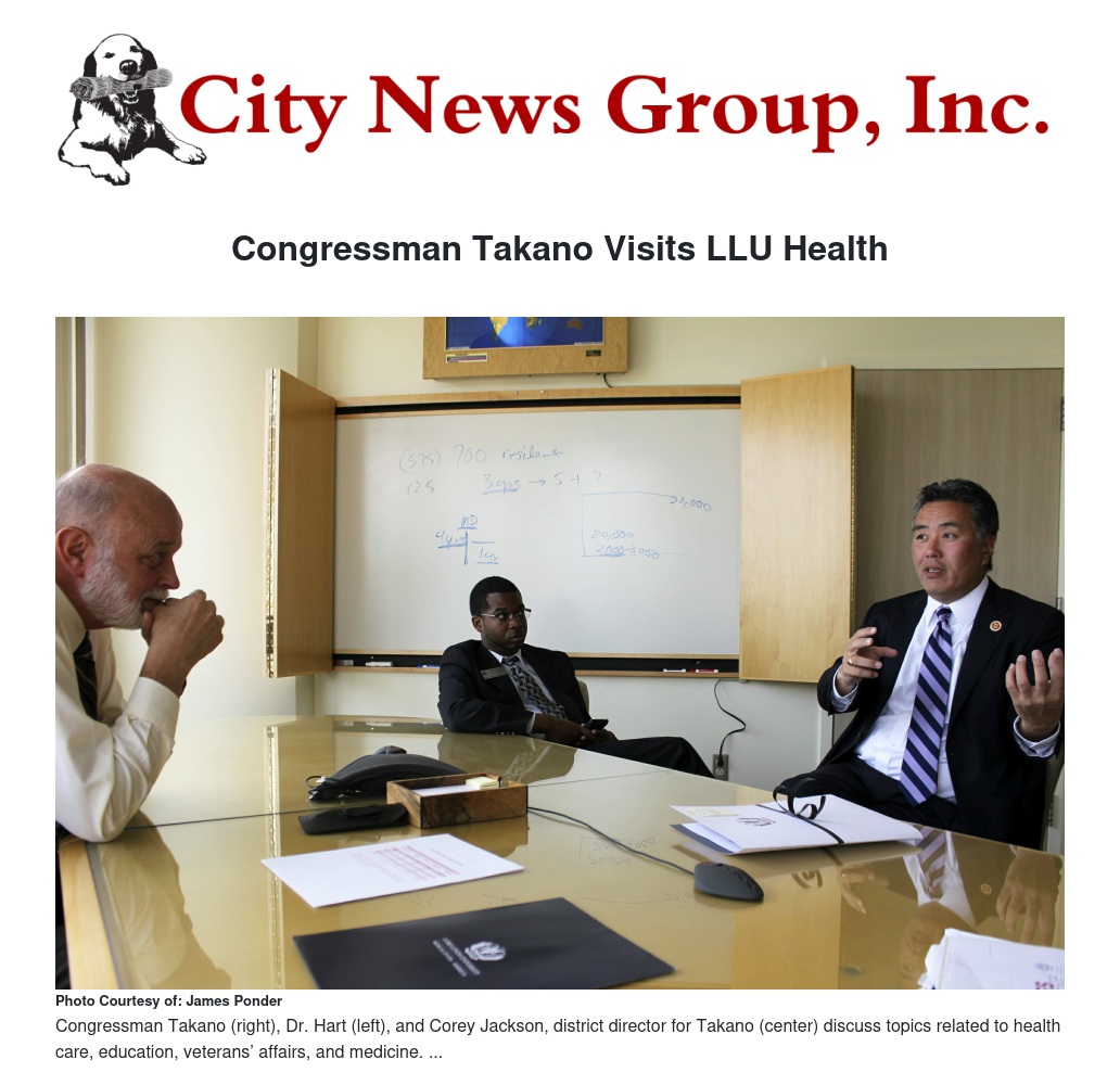 The Riverside native enjoyed his tour of the campus and revealed he learned a lot about the health system. “Dr. Hart explained the importance of federal funding in support of graduate medical education and federally qualified health centers,” Takano said after the meeting. “I also gained an understanding of the importance of Loma Linda University School of Medicine to the Inland Empire.”