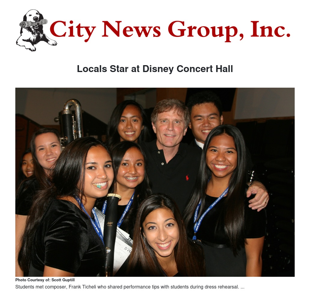 The Loma Linda Academy (LLA) Wind Symphony, under the direction of Giovanni Santos, had the rare opportunity to perform at the world-renowned Walt Disney Concert Hall on June 18, 2014. The concert took place within the state-of-the-art hall that was specifically designed for musical performance, and is home to the Los Angeles Philharmonic.