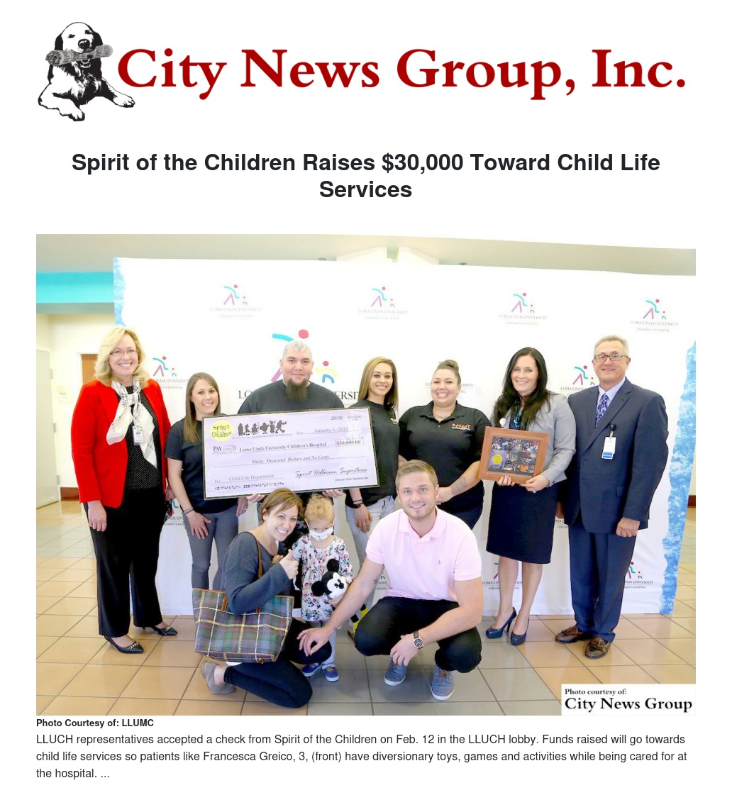 Representatives from Spirit Stores presented a check for $30,000 to Loma Linda University Children’s Hospital (LLUCH) on Thursday, Feb. 12.