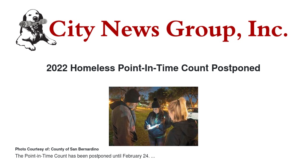 San Bernardino County was one of many homeless Continuums of Care throughout California seeking approval from the U.S. Department of Housing and Urban Development to briefly postpone this year’s count, which had been scheduled for January 27.