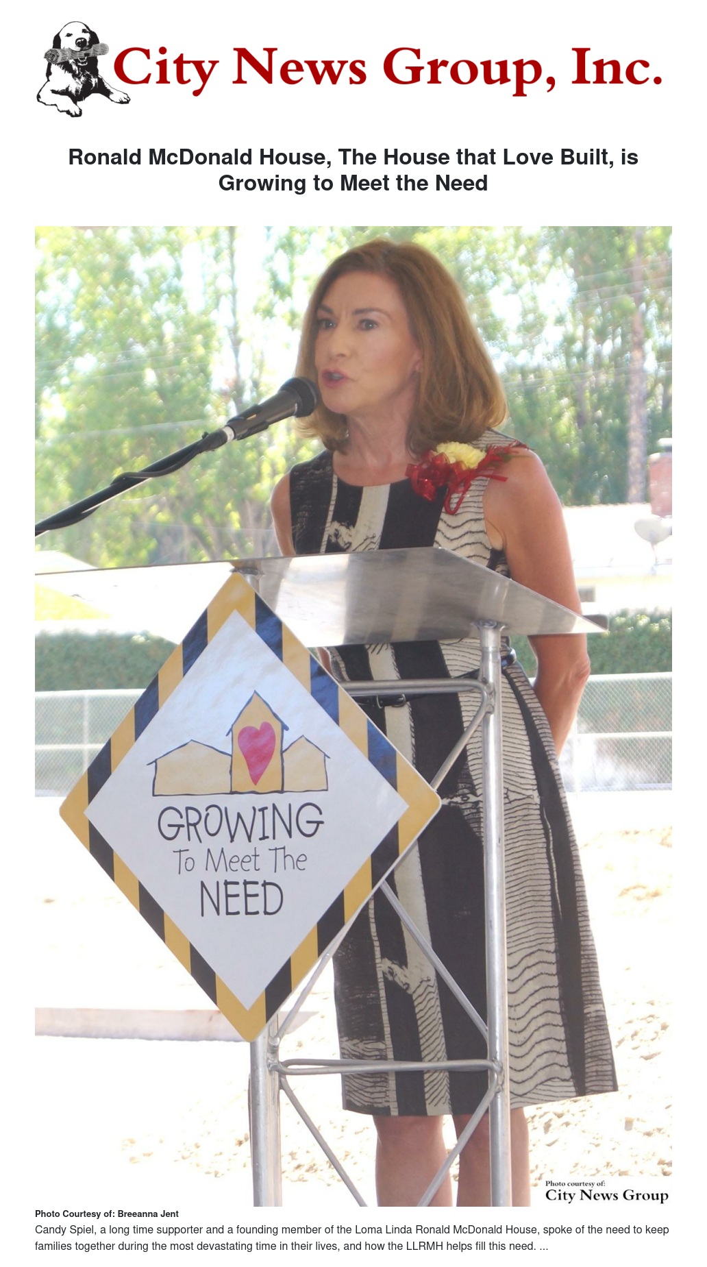 Spiel spoke of a tour she took at Loma Linda University Medical Center, seeing parents who slept overnight in their cars or in hospital corridors. Because of the parents’ need to be near their children during devastating times, Spiel explained she immediately saw the need for the LLRMH. Spiel and her husband Tom have been long time supporters of both the House and Ronald McDonald House Charities.