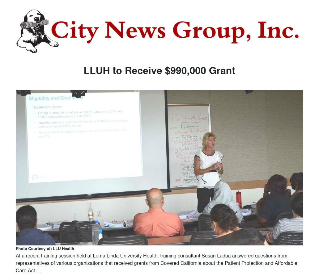 Loma Linda University Health will receive a grant of $990,000 from Covered California to conduct outreach and education programs on how, starting in 2014, Californians can access affordable health care coverage under the federal Patient Protection and Affordable Care Act.