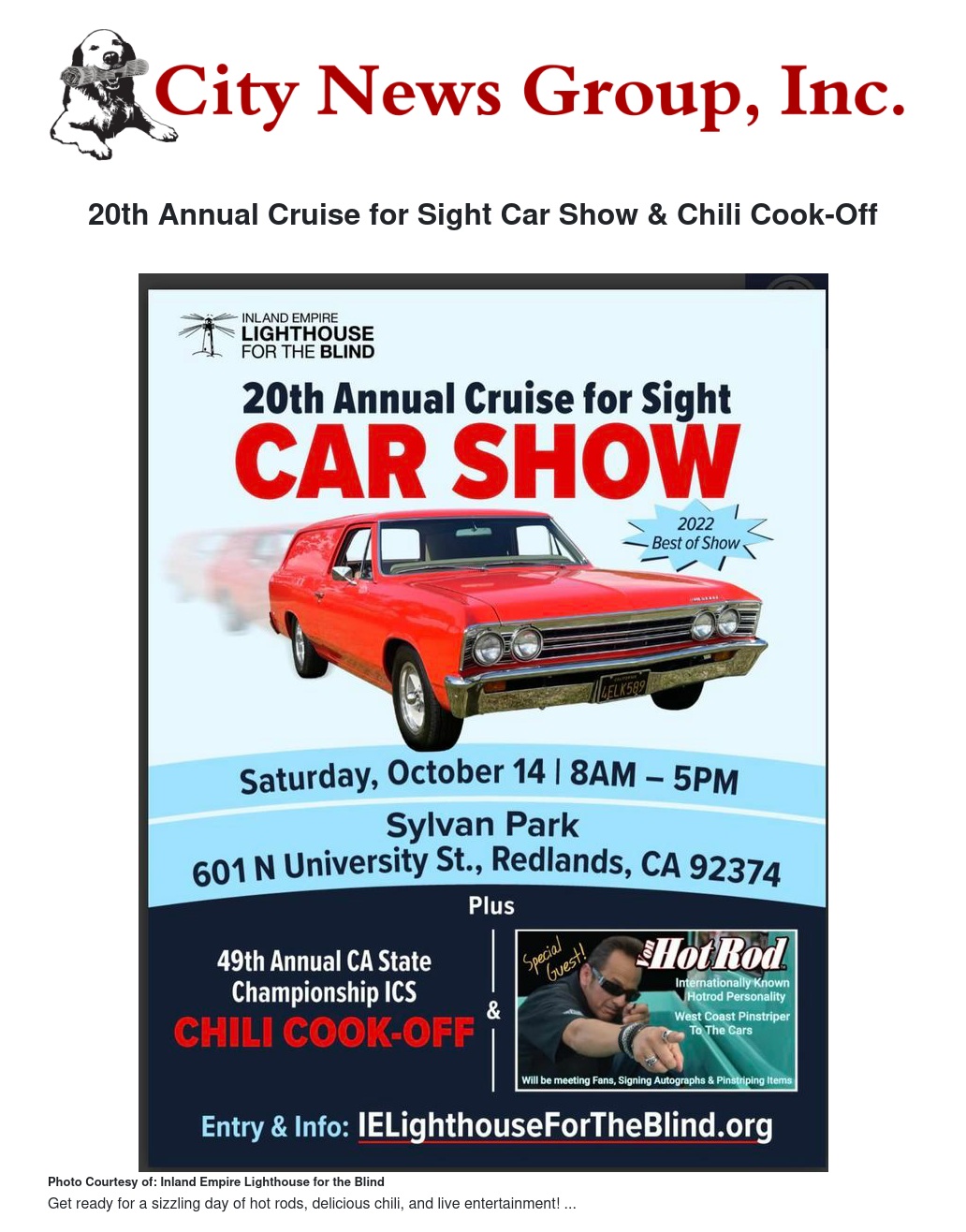 Chili Tasting Starts @ 11AM, Car Awards @ 2:30PM, Chili Awards @ 5PM. Sponsor Picks & Best of Show Plaques will be Awarded.