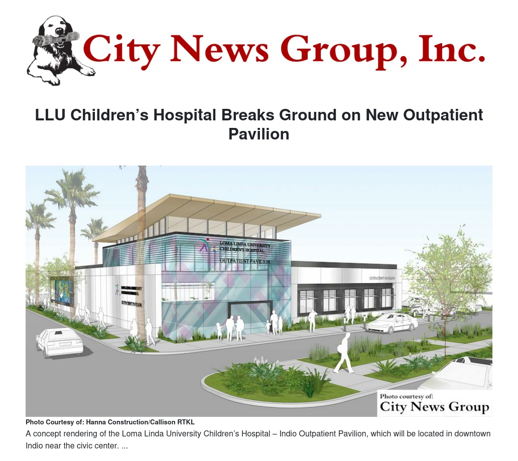 Loma Linda University Children’s Hospital – Indio Outpatient Pavilion will be located near the city’s civic center, which is 70 miles east of Loma Linda University Health’s central campus.