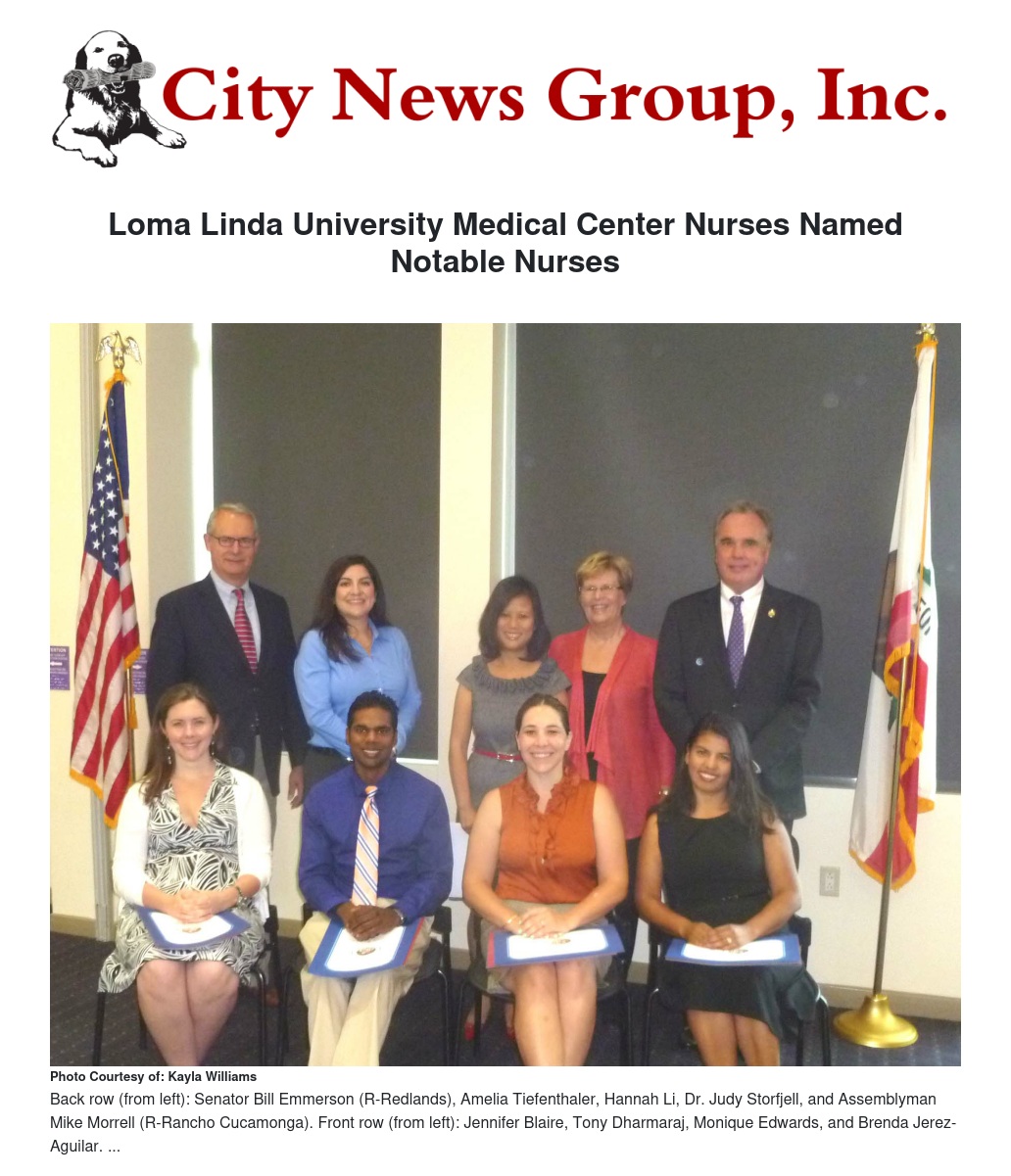 From Loma Linda University Medical Center, Jennifer Blaire, Tony Dharmaraj, Monique Edwards, Brenda Jerez-Aguilar, Hannah Li, Christina Niles and Amelia Tiefenthaler were recognized as notable nurses.