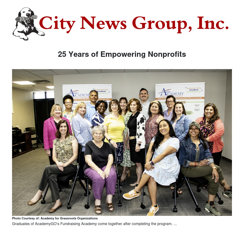 AcademyGO’s mission is to strengthen and positively impact communities by convening, equipping, and guiding nonprofit leaders. Through accessible, high-quality professional fundraising and grantwriting development, values-based leadership training, and peer learning opportunities, the organization empowers nonprofit professionals to expand their knowledge, increase their funding, and lead with purpose.