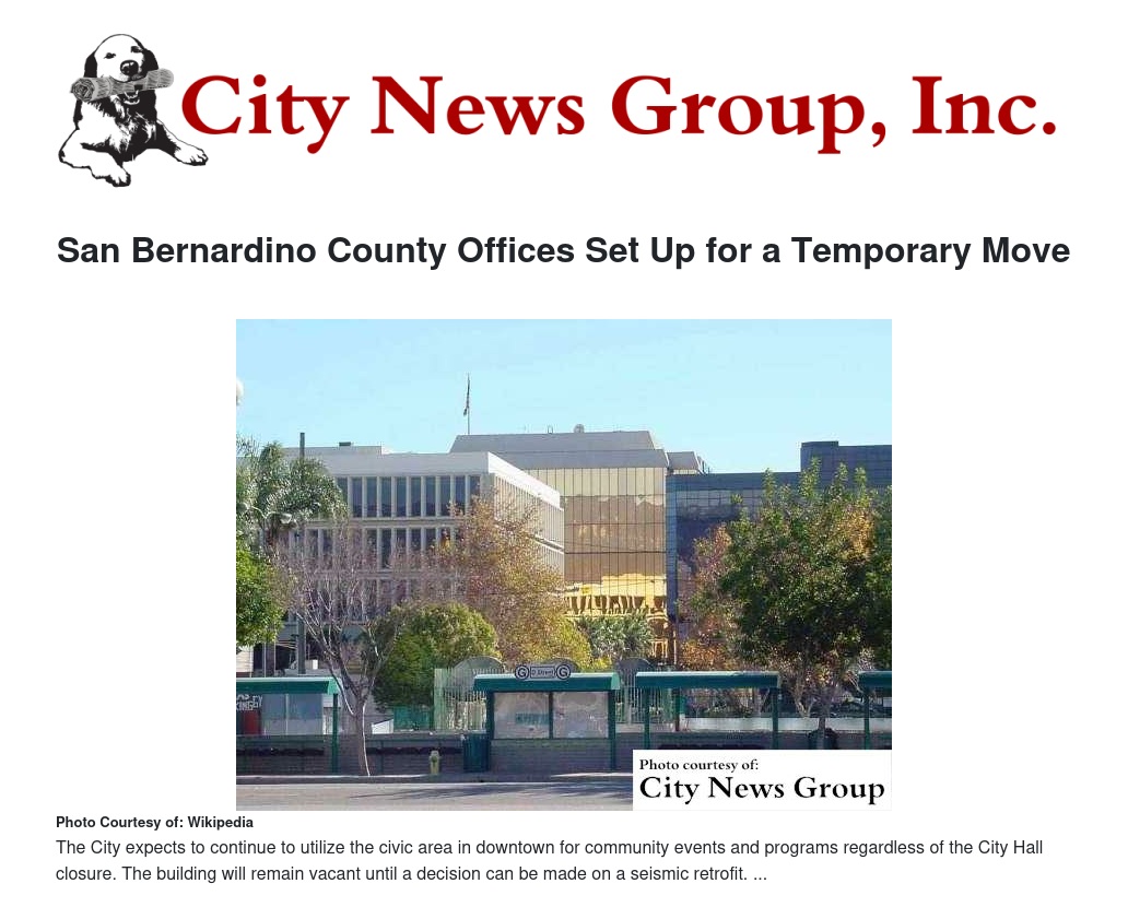 Given the move to multiple buildings, the City is opening a City Information Center at Vanir Tower, an office building located adjacent to City Hall, to assist the public during this time of transition. The City Information Center address is 290 North D Street, San Bernardino, CA 92401. City representatives will be available to answer questions and direct visitors to the proper locations. All departments located at City Hall, with the exception of Water Department Customer Service offices, are expected to have completed their move over the upcoming weekend and reopen at their new locations on Monday, May 22.