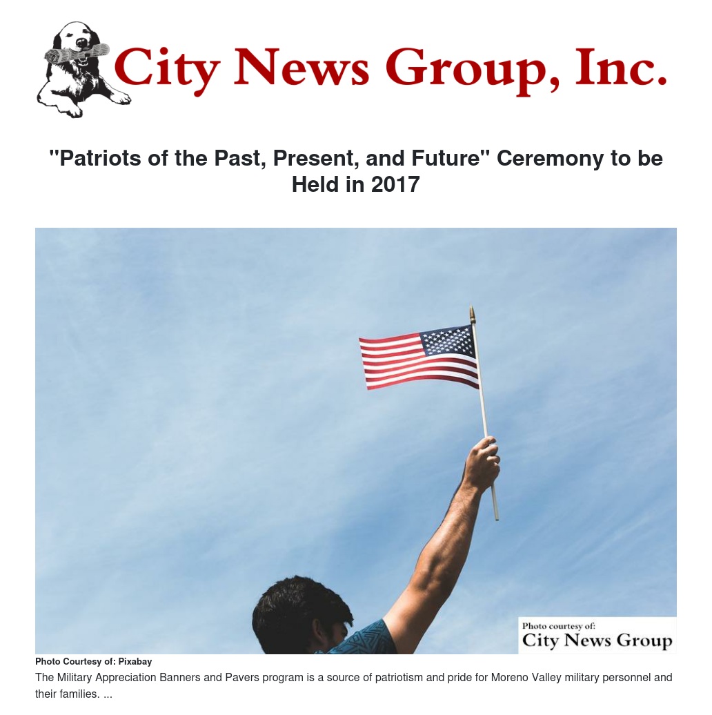 "Patriots of the Past, Present, and Future" Ceremony to be Held in 2017