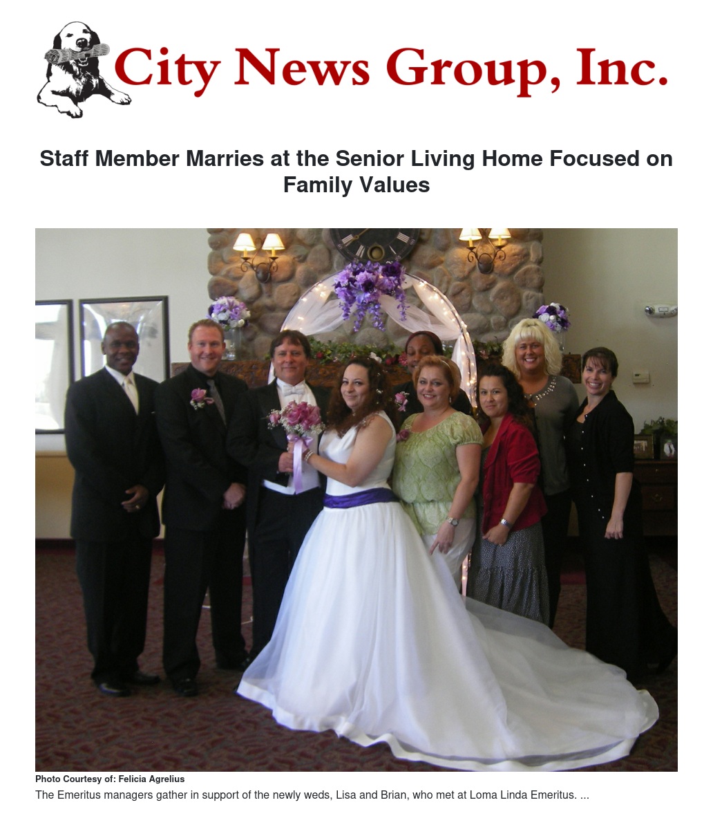 Loma Linda’s Emeritus Senior Living values family above all else, and it was their dedication to bringing senior residents and staff together that facilitated just the kind of environment of friends and family needed for a wedding.