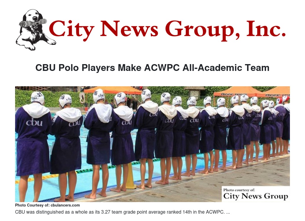 In addition to the individual honors, CBU was distinguished as a whole as its 3.27 team grade point average ranked 14th in the ACWPC, which includes NCAA teams from all three divisions. It is the fourth time the Lancers have had up to 11 All-Academic honorees in the ACWPC, matching the feat in 2011 and qualifying a program-high 12 in 2007.