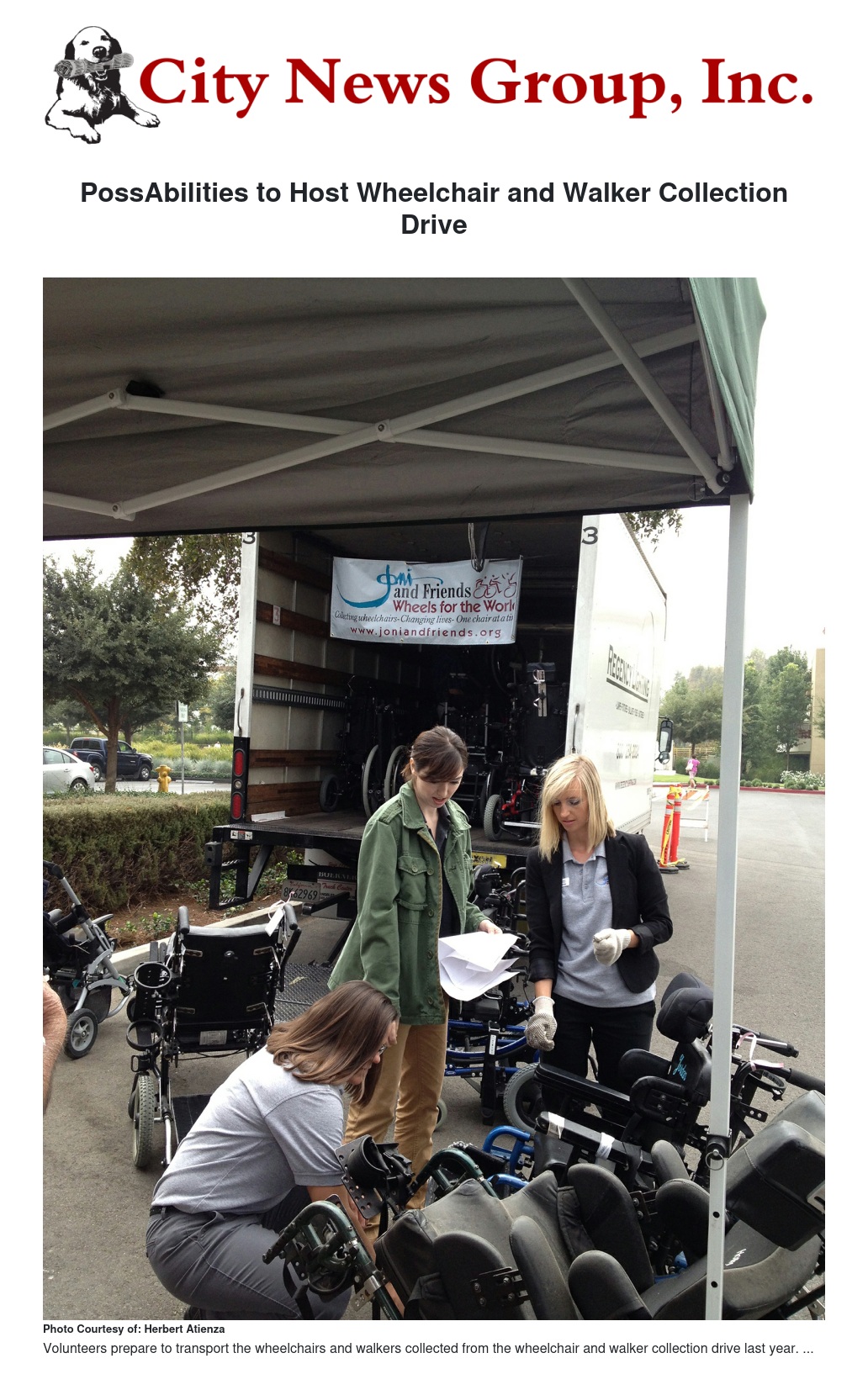 Drop off any new or used non-electric wheelchairs, canes or walkers between 9 a.m. to 12 p.m. on Friday, Sept. 19, west of the PossAbilities office at, 25455 Barton Rd., Suite 109A, Loma Linda, Calif. 92354. Electric wheelchairs cannot be accepted due to the cost of transportation. A tax donation receipt will be provided by Joni and Friends Wheels for the World.