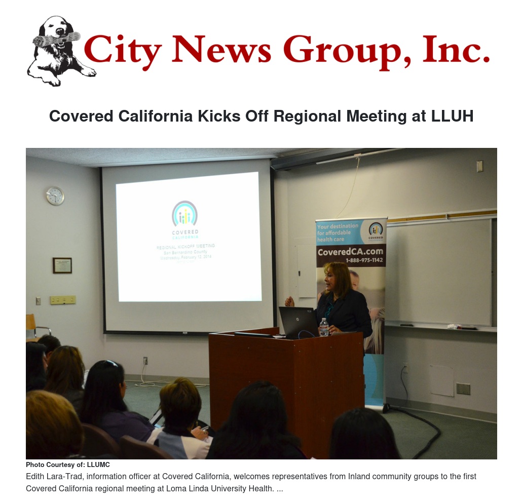 “One of the objectives of the regional meeting is to focus on increasing partnerships and collaboration within the region, and to share lessons learned from the first weeks of enrollment,” said Edith Lara-Trad, information officer at Covered California, and the regional coordinator for the effort.