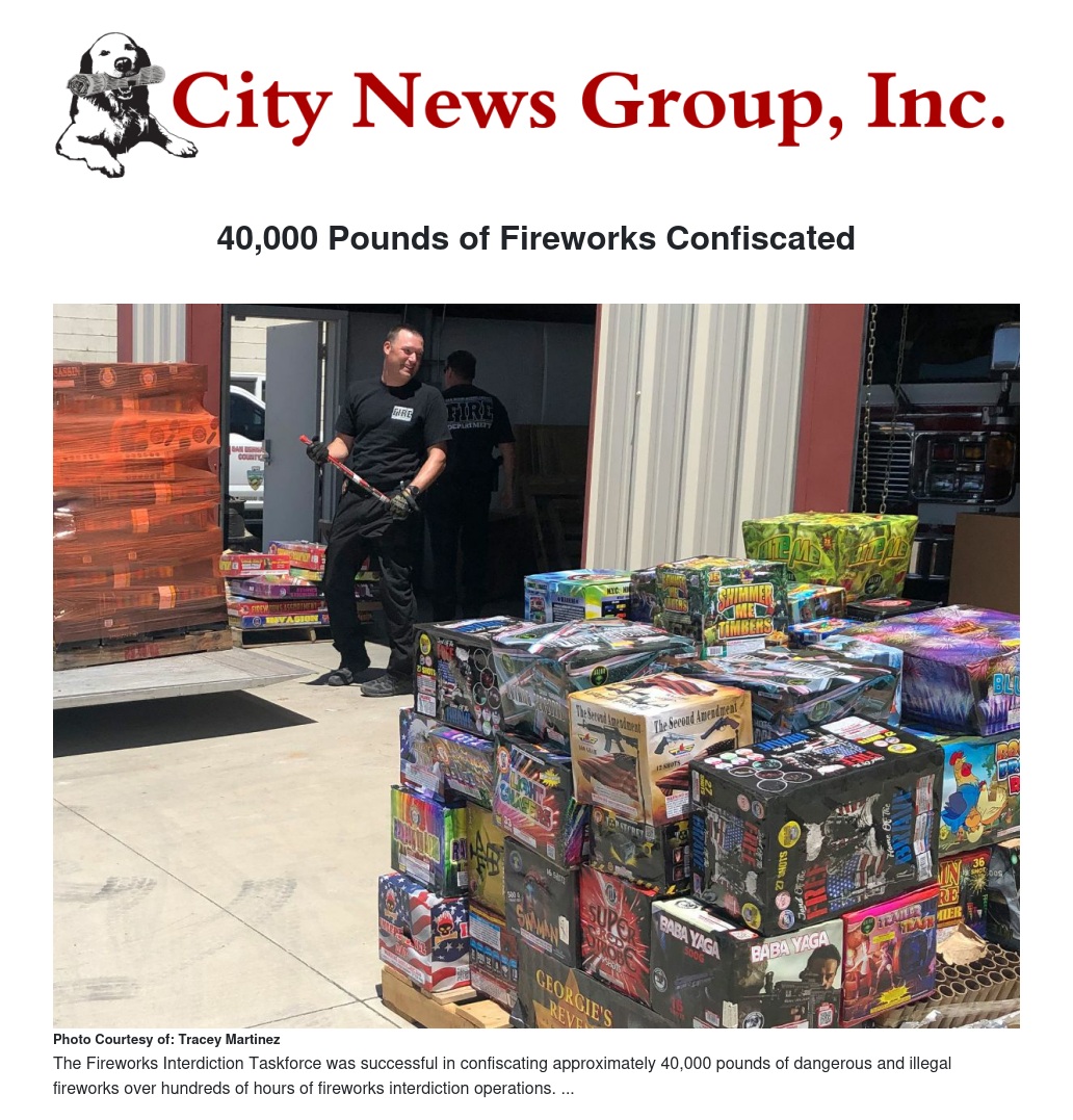 Investigators from San Bernardino County Fire partnered with the Colton and Rancho Cucamonga Fire Departments to stop dangerous and illegal fireworks from entering the county. Beginning in June through July 4, 2020, investigators targeted key entry points into the county, specifically I-15 from Nevada, conducting vehicle checks and searching out illegal fireworks.