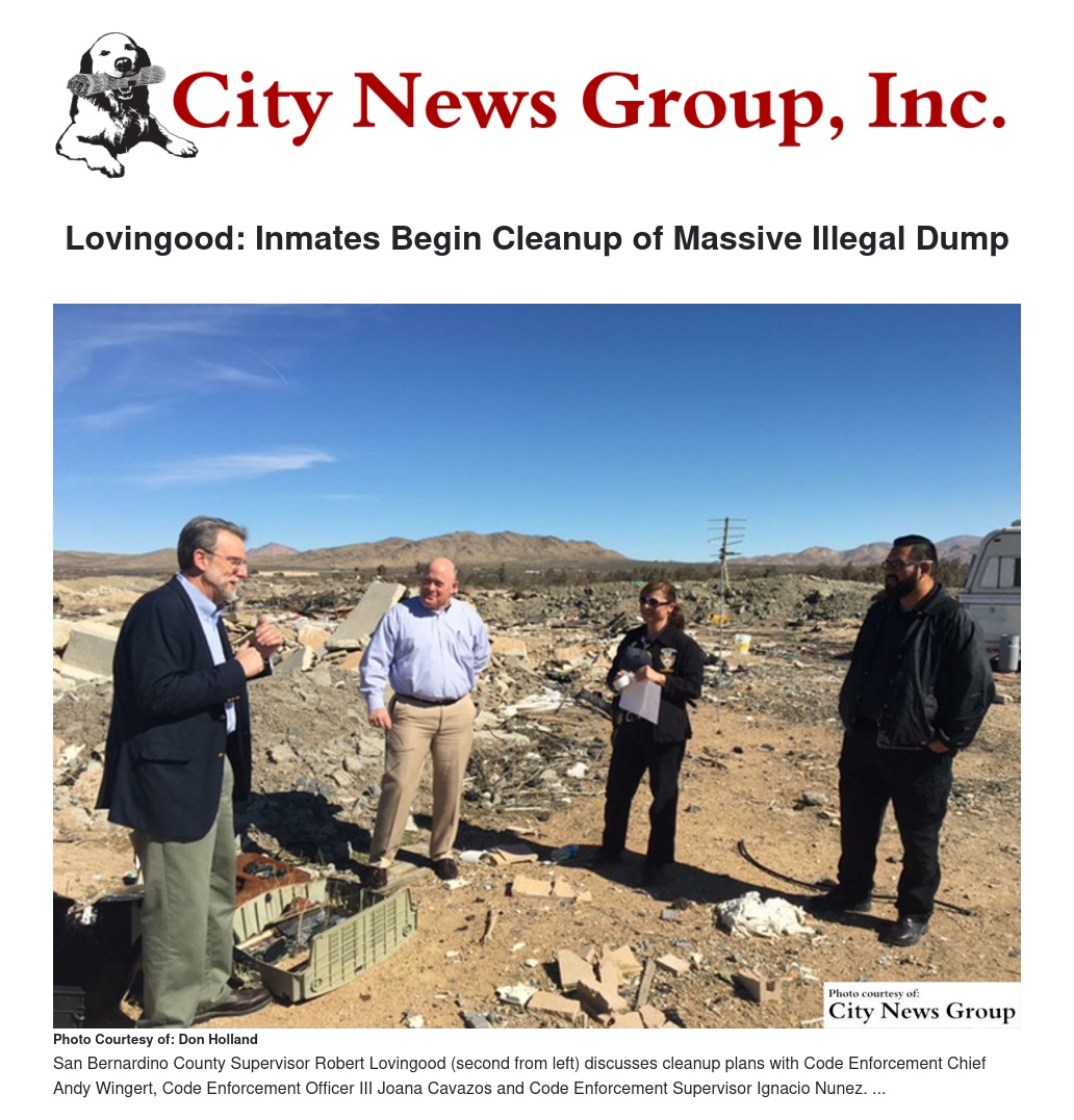 “San Bernardino County’s Code Enforcement team has a difficult job,” Lovingood said. “So when you see a crew out there, just remember that Code Enforcement is helping clean up the community.”