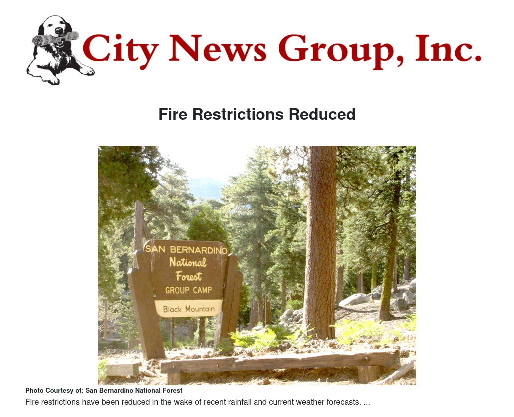 With recent rain and current weather forecasts, forest officials on the San Bernardino National Forest reduced fire restrictions.