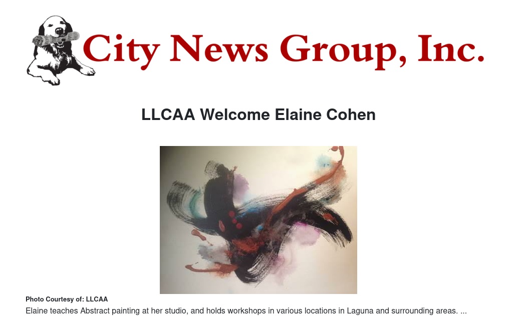 The Loma Linda Cultural Arts Association (LLCAA) will welcome Elaine Cohen, a painter, sculptor, and teacher, as the demonstrating artist at their monthly meeting on Sunday, September 10, 2017, at 2:00 p.m. Ms. Cohen will demonstrate her creative process and discuss her journey as an artist. Her dream is to share the excitement and delight she finds in creating art with her audiences and students.