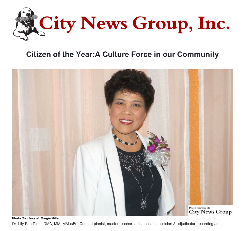 Well known as a music educator and performer, Dr. Lily Diehl has placed in several musical competitions, and was noted as being the "most versatile performer of the year" in Southern California for her outstanding achievement as a pianist, vocalist and lead role in "The Sound of Music."
