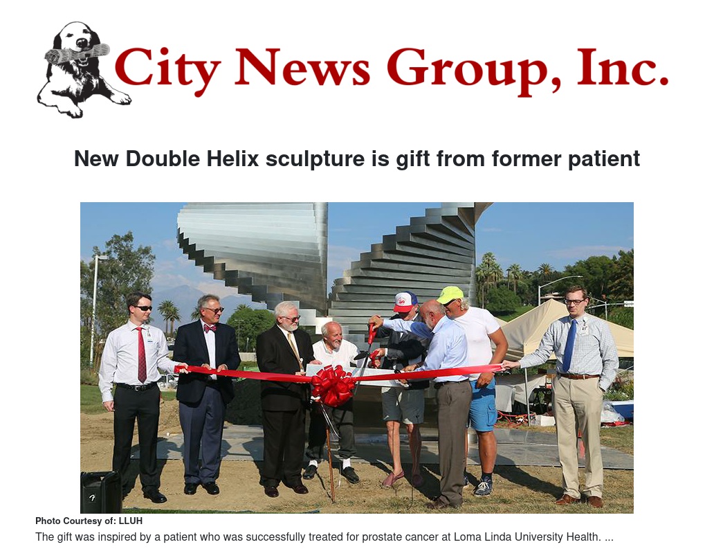 A new sculpture in front of Centennial Complex at Loma Linda University Health captures the spiral elegance of the double helix, strands of nucleic acids also known as DNA.
