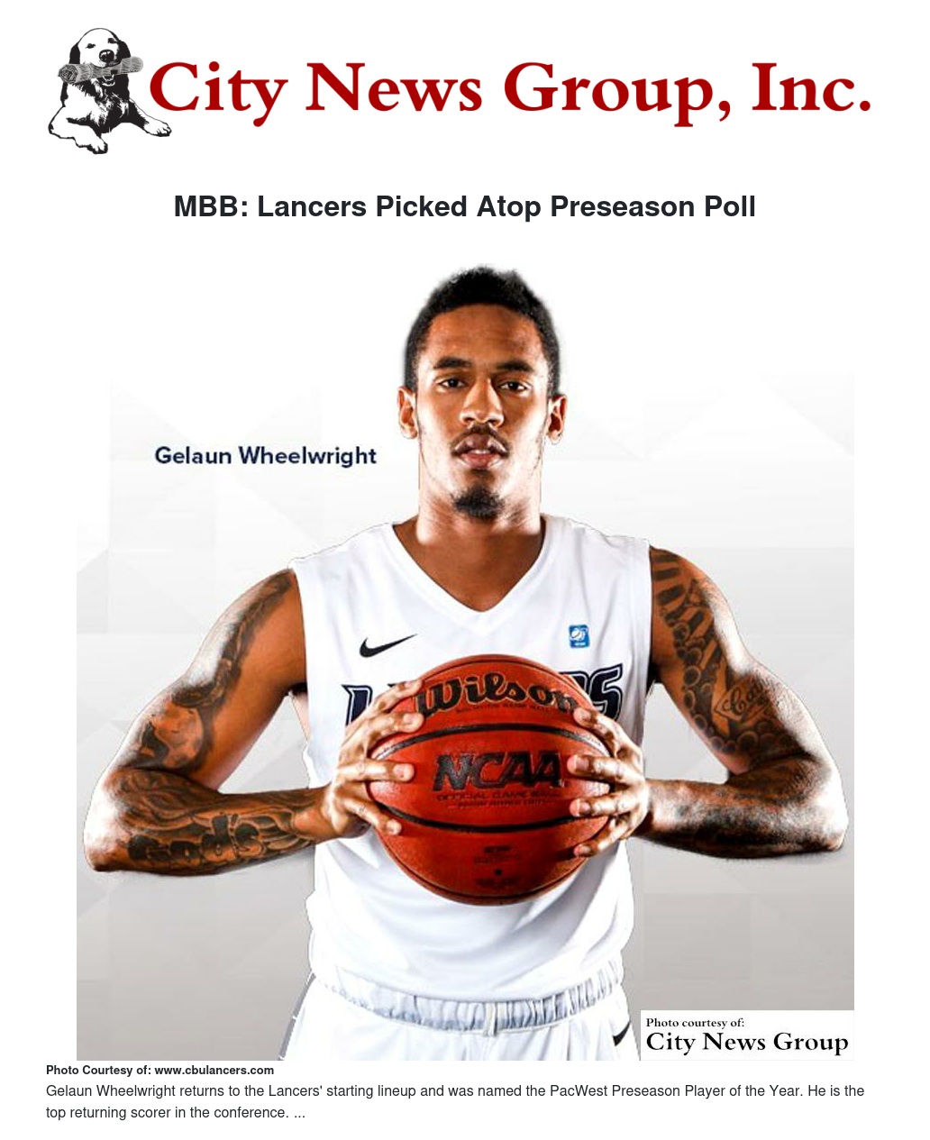 Gelaun Wheelwright returns to the Lancers' starting lineup and was named the PacWest Preseason Player of the Year. He is the top returning scorer in the conference. The senior guard, who was named a DII Bulletin Preseason All-American earlier this month, finished last year averaging 17.6 points per game and was on a six-game streak grabbing double figures, scoring 20 or more points. He ranked 10th in all of Division II with 3.30 triples per game.