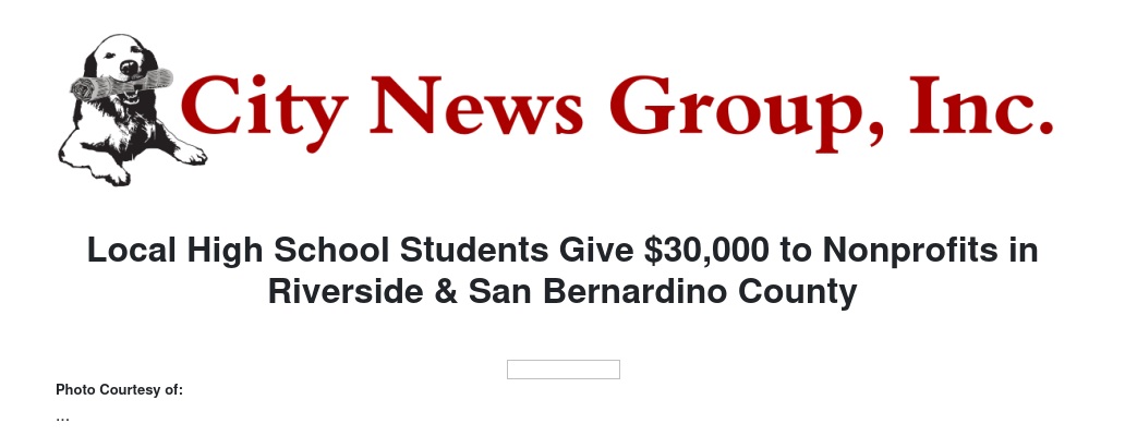 Local High School Students Give $30,000 to Nonprofits in Riverside & San Bernardino County by Chester Wallace - City News Group, Inc.