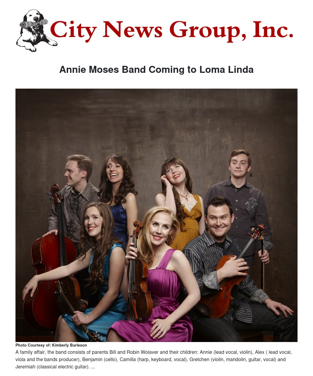 Annie Moses Band Coming to Loma Linda