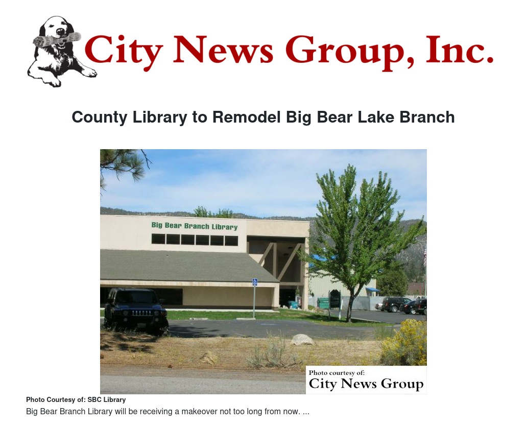 County Library to Remodel Big Bear Lake Branch