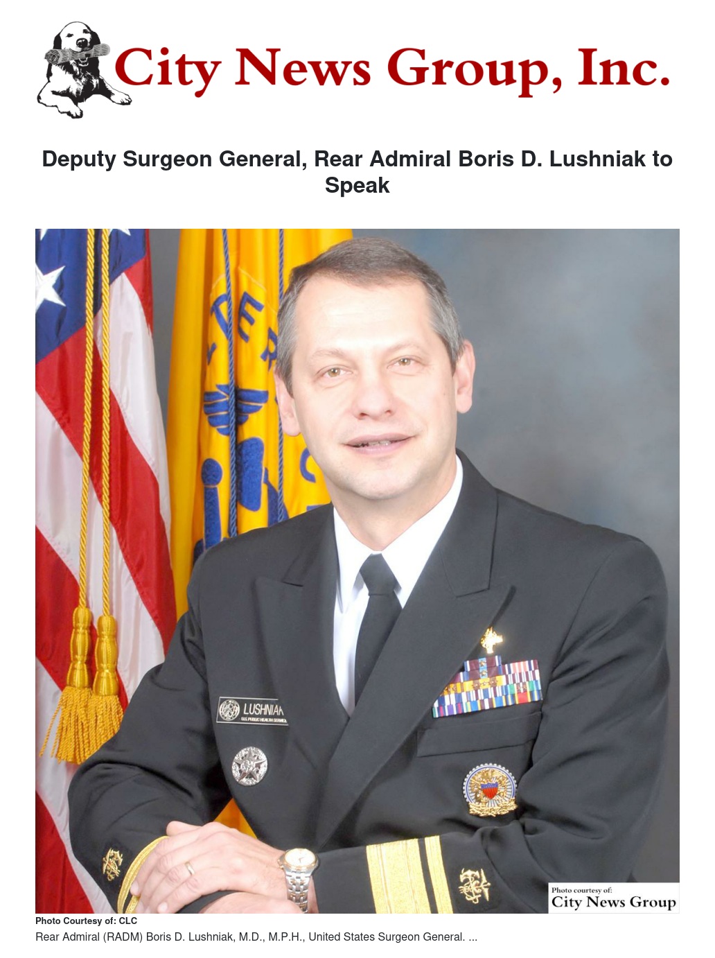 Deputy Surgeon General, Rear Admiral Boris D. Lushniak to Speak