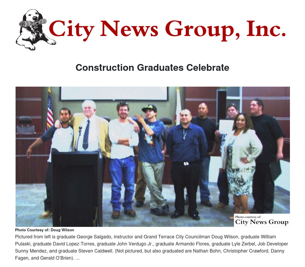 On Tuesday, May 17, 2016 eleven construction program students celebrated with their families at a graduation ceremony held at the Inland Valley Development Agency Board Room.