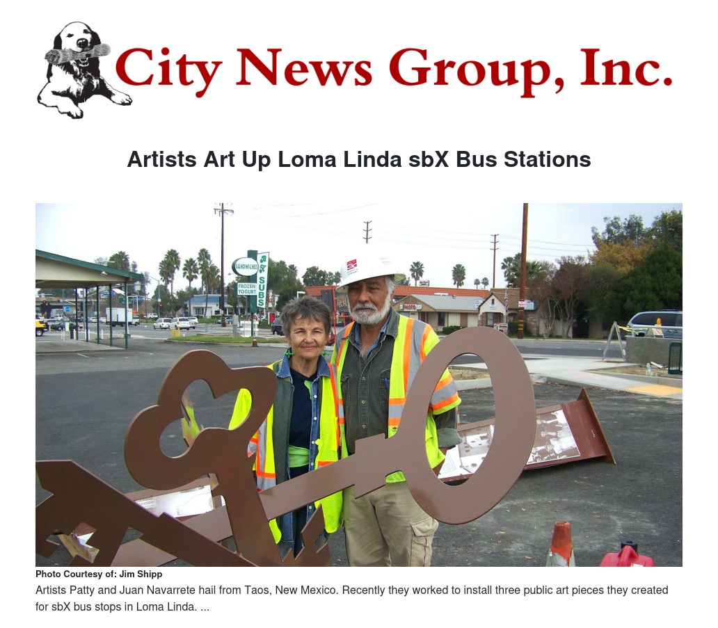 Artists Patty and Juan Navarrete from Taos, New Mexico, have spent a few days installing three public art pieces they created for sbX bus stops in Loma Linda. They won a national competition for creating the art pieces, which have been in process for the last two years.
