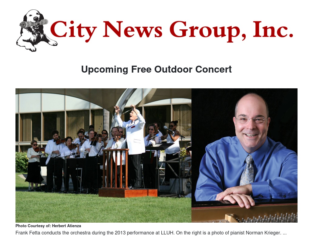 The concert is set for 5 to 6:45 p.m. at the Loma Linda University Health Campus Mall, the lawn between Wong Kerlee International Conference Center and Magan Hall. The campus address is 11060 Anderson St., in Loma Linda.