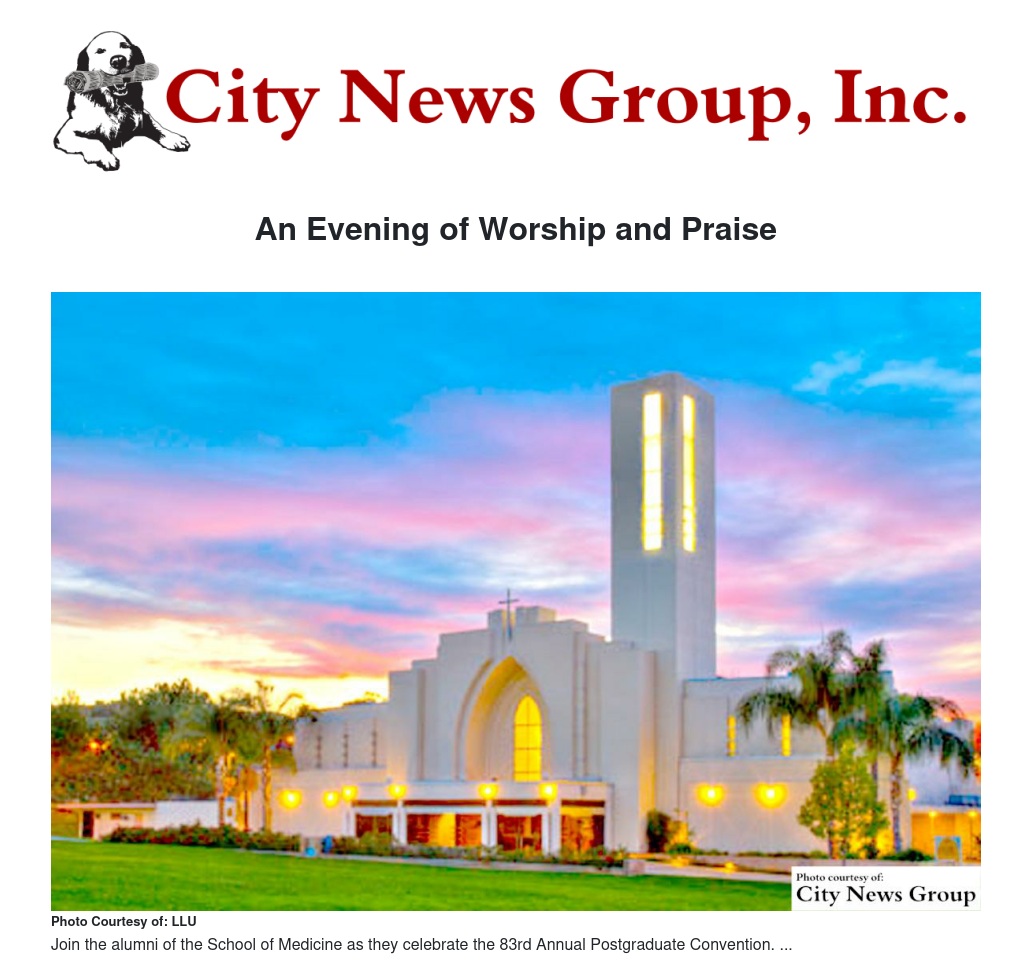 The evening praise and worship vespers will also feature “The Parade of Flags” featuring flags of some 30 nations, representing the citizenship of students currently enrolled in the School of Medicine. A student praise team will be featured as well as music by guest artists, “The Conner Smith Trio” popular gospel singers from California Baptist University and Desmond Clark, singer, composer and recording artist. At the conclusion of the program the audience will enjoy a time of fellowship and refreshments hosted by medical students.