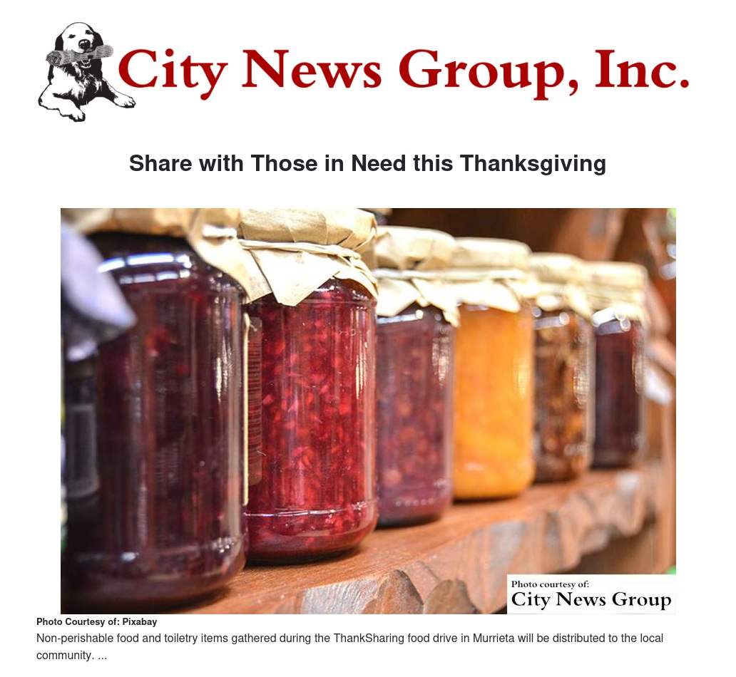 As is the custom at Loma Linda University Health, the ThankSharing food drive bins are now in place through Nov. 19. The non-perishable food and toiletry items gathered during this time in Murrieta will be distributed to the local community, while items collected on the main campus will be given to SAC Health System and then provided to patient families in need.
