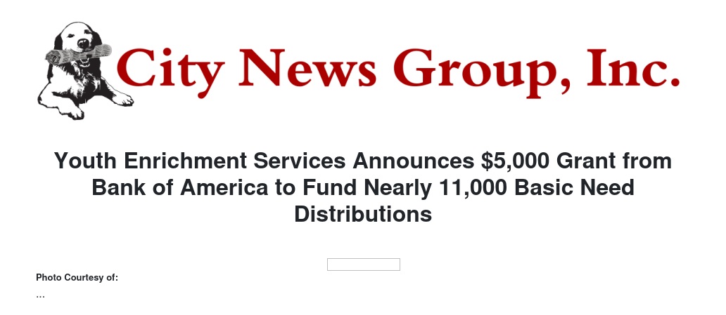 Youth Enrichment Services Announces $5,000 Grant from Bank of America to Fund Nearly 11,000 Basic Need Distributions by Tracylyn Sharrit - City News Group, Inc.