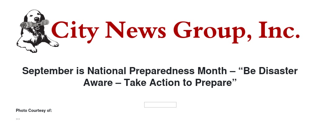 September is National Preparedness Month – “Be Disaster Aware – Take Action to Prepare”
