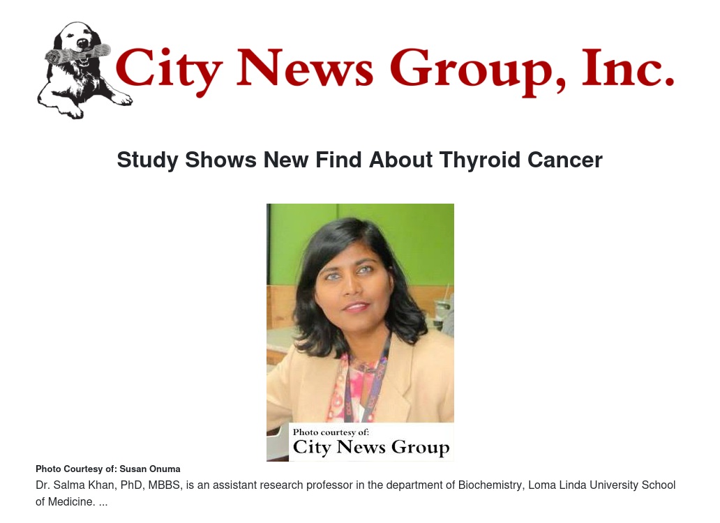 LOMA LINDA>> A Loma Linda University research team, led by Dr. Salma Khan, PhD, MBBS, and assistant research professor in the department of Biochemistry, Loma Linda University School of Medicine, has been undertaking a study on thyroid cancer to correlate the incidence to food consumption/life style practices among immigrated Filipino-American adults with a wide range of acculturation.