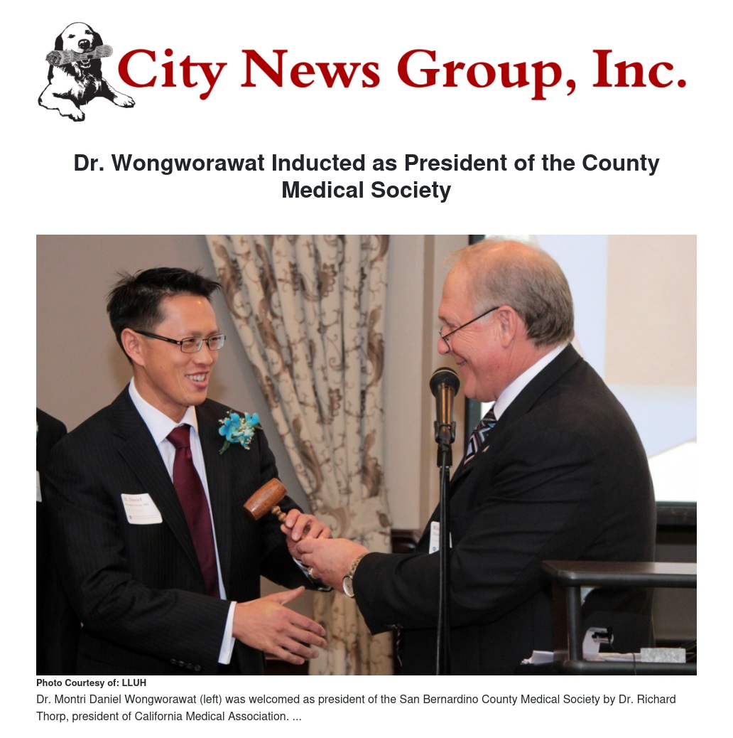 “I feel honored to be installed as president of San Bernardino County Medical Society and am humbled by the long line of presidents before me who have led the society since its founding,” said Wongworawat.