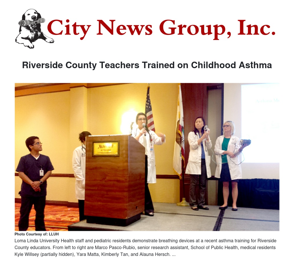 Staff from the LLUH School of Public Health asthma program — a First 5 Riverside-funded program with a focus on increasing awareness on asthma and its management — were teaching a group of Riverside County educators on childhood asthma: its prevalence in Riverside County schools, the vulnerability of asthmatic children, and what to do when students suffer an attack.