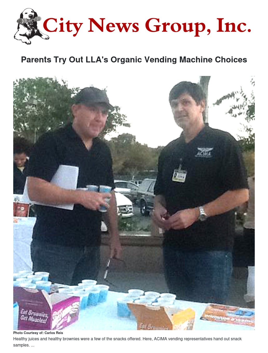 During a parent/teacher meeting at the school on Nov. 7 the school's healthy snack food distributor, Acima Food Services' vending division, held a snack expo and invited parents to not only see, but also taste, the snacks - vegan and organic - their kids are eating.