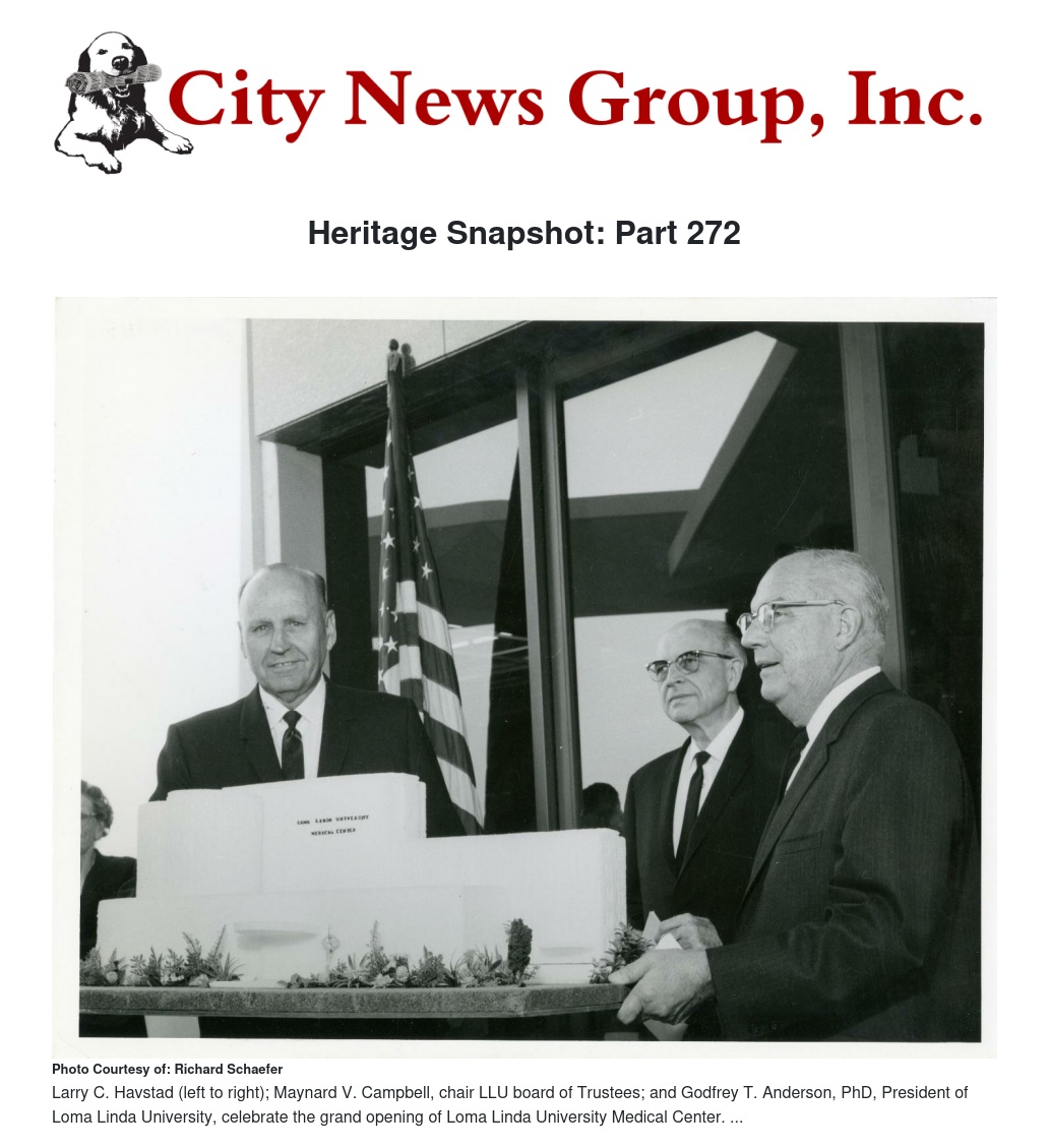 LOMA LINDA>> Larry C. Havstad built Burden Hall, Evans Hall, Shryock Hall, the Campus Hill Church, Risley Hall, the Library and Administration Building, the School of Dentistry, Griggs Hall, the Student Activities Center (including the Campus Cafeteria), Kate Lindsay Hall, the Loma Linda Market, Mortensen Hall, the White Memorial Church, and the White Memorial Hospital. In some cases, Havstad replaced heavy equipment with student labor to help students pay for their tuition. Earl Heitschmidt, his architect for almost 40 years on many of the projects, joined Havstad in adapting to financial constraints that faced the institution, and together saved it millions of dollars. As a result, the Heitschmidt-Havstad team become well known for stretching the CME/LLU building dollar.