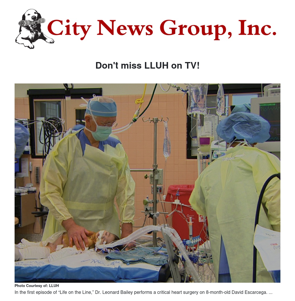 “Working on this series has been an amazing experience,” said Patricia Kelikani, director of Advancement Films at LLUH. “This show isn’t just about the doctors, but how real people find meaning in the midst of a tragedy. This is where the real story lives and their strength of spirit shines.”