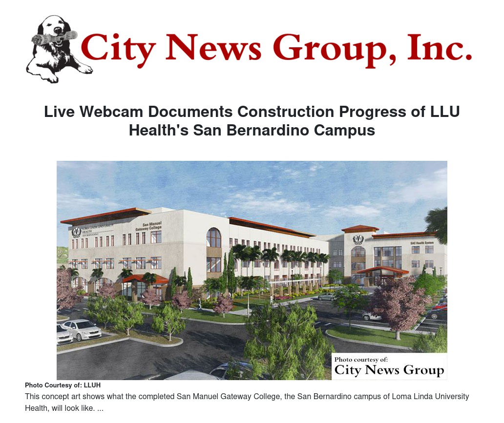 Live Webcam Documents Construction Progress of LLU Health's San Bernardino Campus