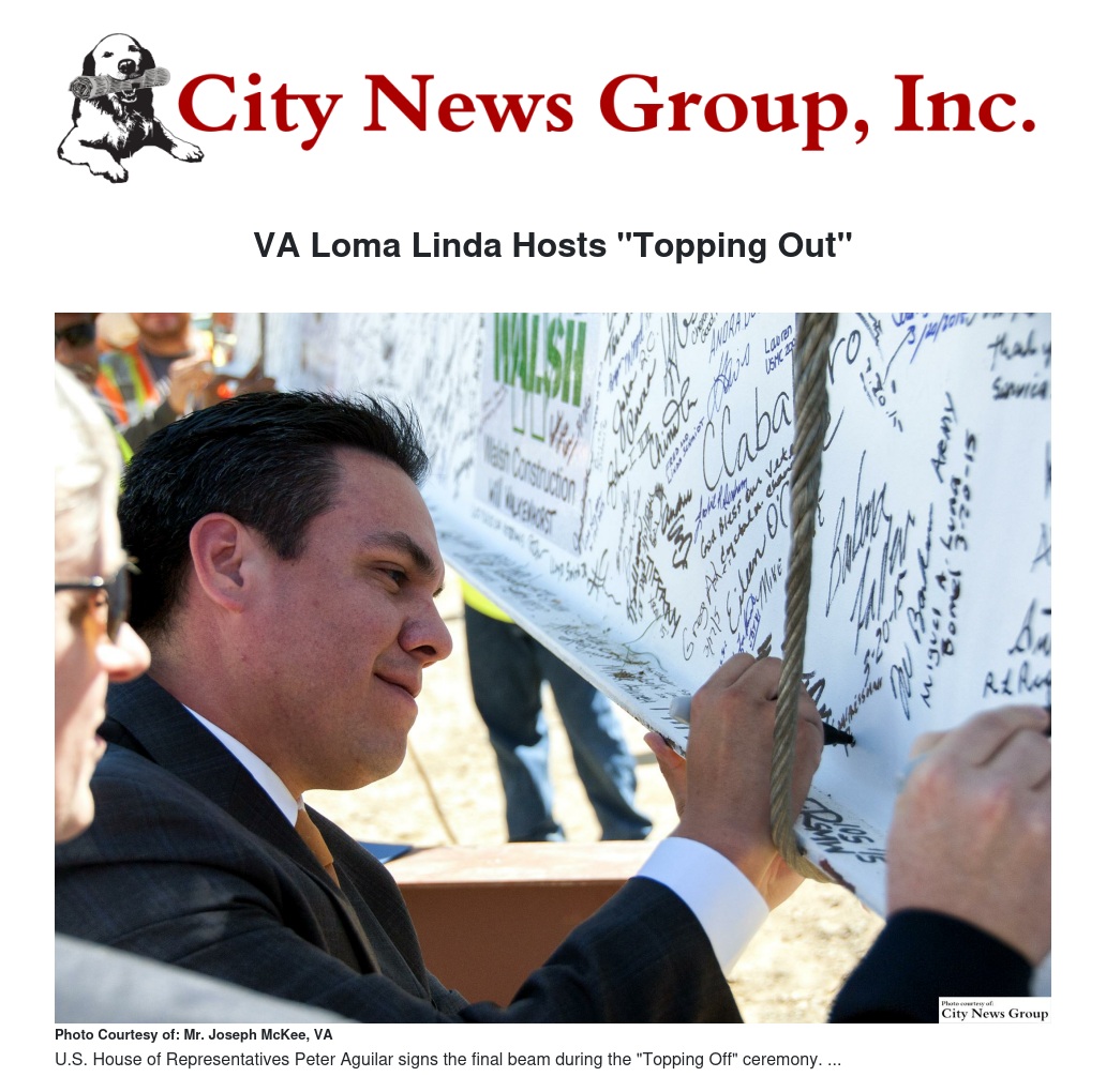 In conjunction with VA's contractor, the Walsh Group, and VA’s Office of Construction and Facilities Management, the Topping Out ceremony for VA Loma Linda's Ambulatory Care Center site (26001 Redlands Blvd., Loma Linda, CA 92354) was held on March 20.