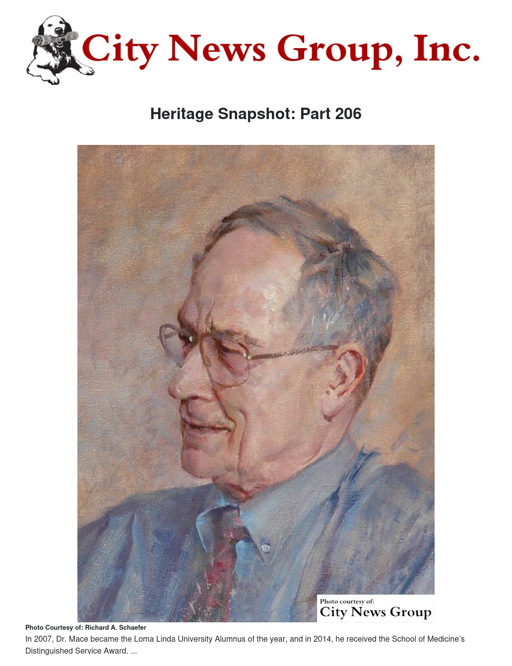 LOMA LINDA >> John W. Mace was born July 9, 1938 in Buena Vista, Virginia. His mother finished the seventh grade, but his father didn’t finish the first grade. When he was 8, they became Seventh-day Adventists, which was good for John and his seven sisters, because the church emphasized education. The death of a younger cousin from pneumonia when he was three or four made him think that if he were a doctor he could do something about that. He knew from as far back as he can remember that he wanted to become a physician. John attended a one-room school in Buena Vista that had eight grades. He loved it because he got to learn what the older kids were being taught. He later attended Shenandoah Valley Academy and graduated from Columbia Union College in 1960.
