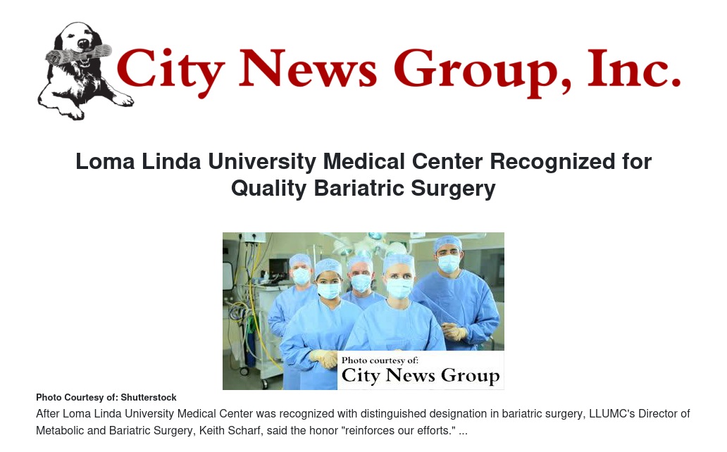 “Loma Linda University Medical Center is dedicated to giving the highest quality of care in every specialty,” said LLUMC CEO Kerry Heinrich. “This recognition is a true testament to the individuals who are providing care to our bariatric patients, and for that I congratulate them.”