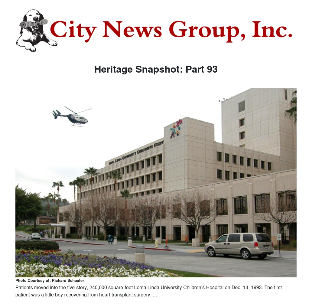 Patients moved into the five-story, 240,000 square-foot Loma Linda University Children’s Hospital on Dec. 14, 1993. The first patient was a little boy recovering from heart transplant surgery.