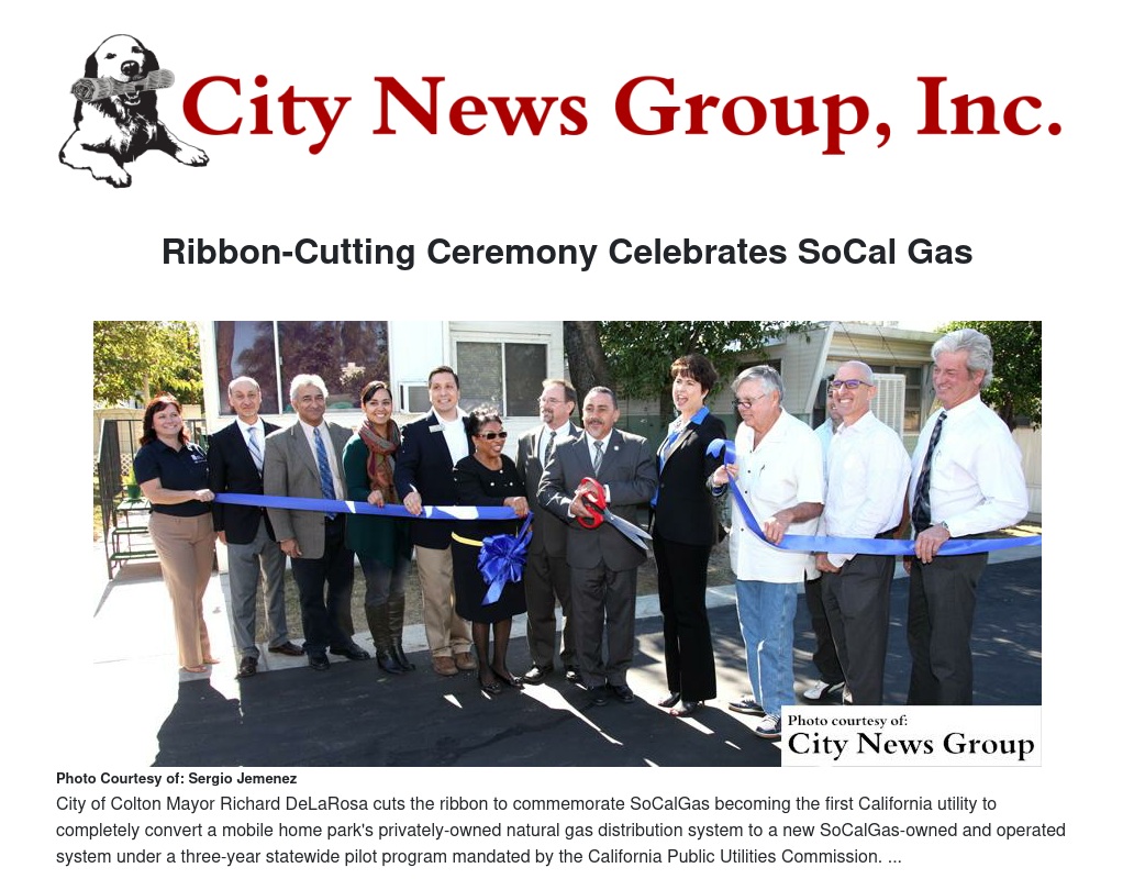 SoCalGas became the first California utility to completely convert a mobile home park's privately-owned natural gas distribution system to a new SoCalGas-owned and operated system under a three-year statewide pilot program mandated by the California Public Utilities Commission.