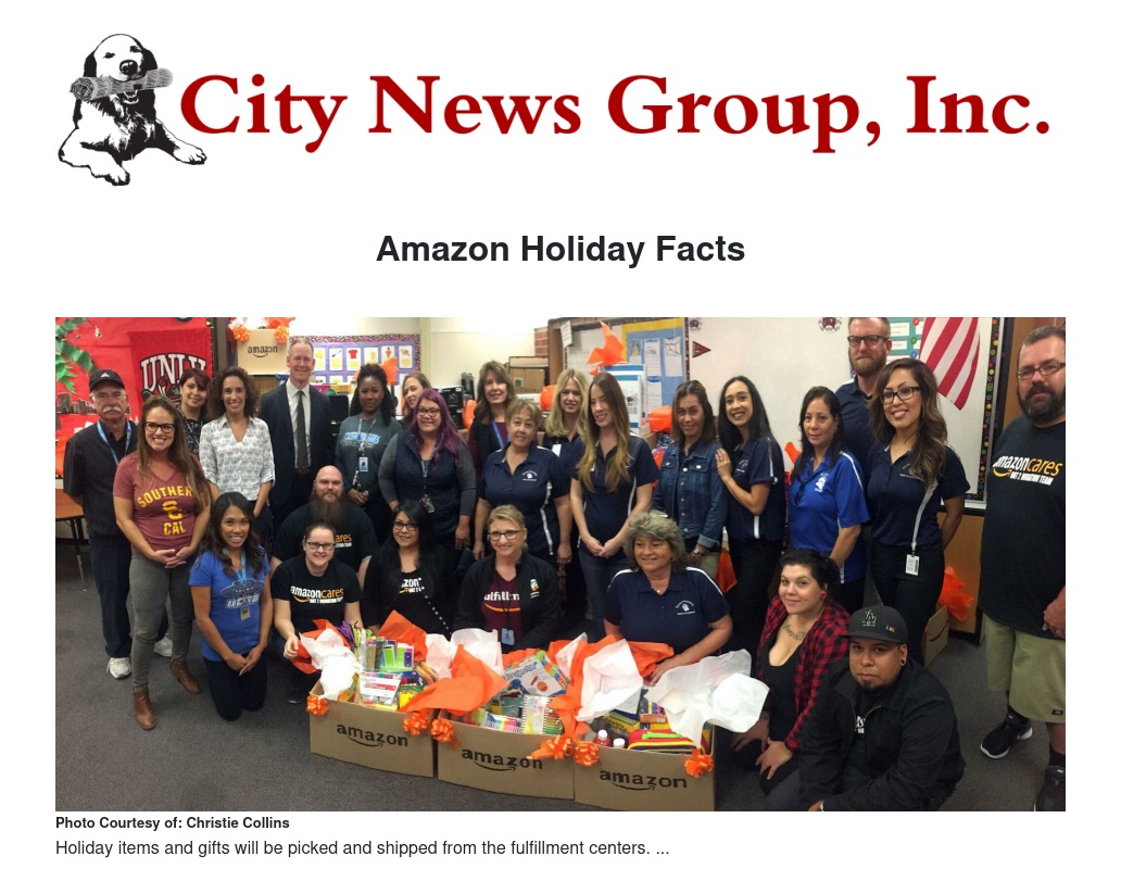 · To spread holiday cheer to associates that work so hard for our customers, hundreds of thousands of dollars worth of prizes such as gift cards, televisions, vacation packages, theme park tickets and Amazon devices have been raffled off to associates in San Bernardino, Redlands, Moreno Valley, Eastvale and Rialto.