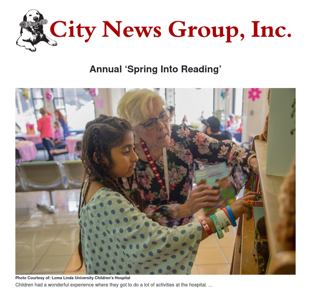 Patients at Loma Linda University Children’s Hospital (LLUCH) were treated to an afternoon of books, arts and crafts at the annual “Spring Into Reading,” a patient diversionary event sponsored by the Big Hearts for Little Hearts Loma Linda Guild.